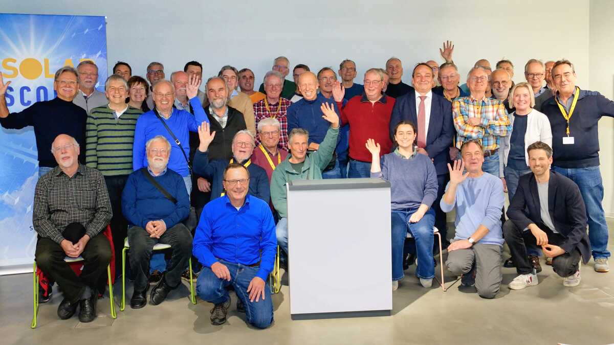 Bild: Die beim Winterfest 2025 anwesenden SolarScouts und Vertreter*innen aus dem AfU und ebz (Foto: Peter Schütt)